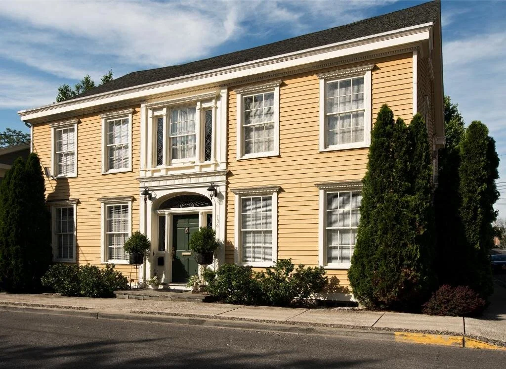 Italianate-style boarding house turned boutique hotel, with 9 elegantly appointed guest rooms, an art deco bar, farm-to-table tavern, and riverfront grill.